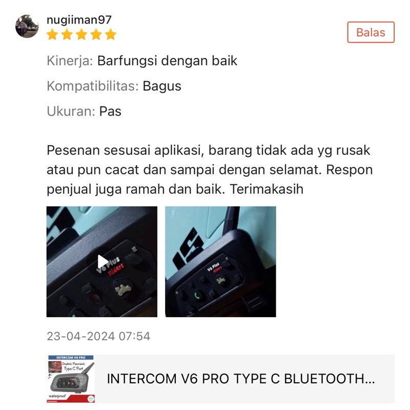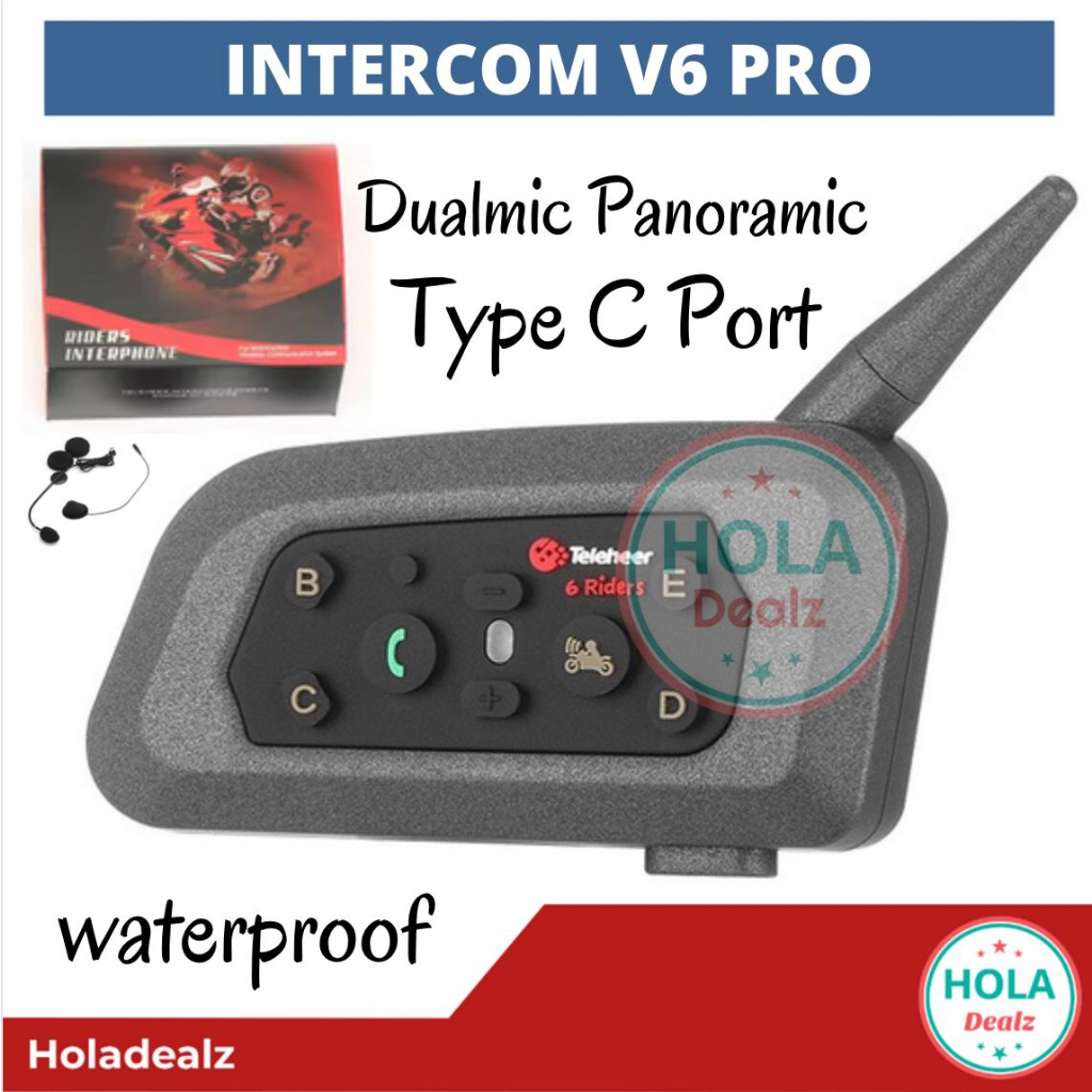 INTERCOM V6 PRO TYPE C BLUETOOTH HELM HEADSET V6 PRO DUALMIC PANORAMIC ORIGINAL