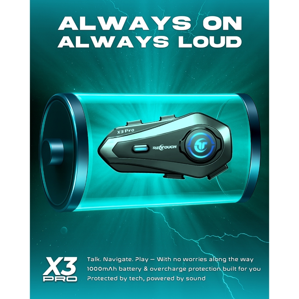 RETOUCH X3 PRO Intercom Bluetooth Helmet | Call | Music Sharing + Intercom | Waterproof IP56
