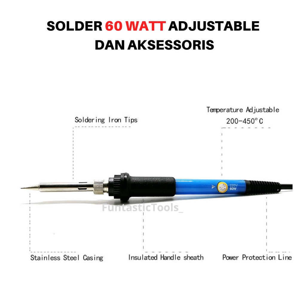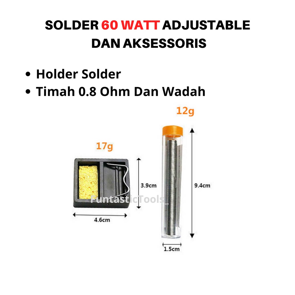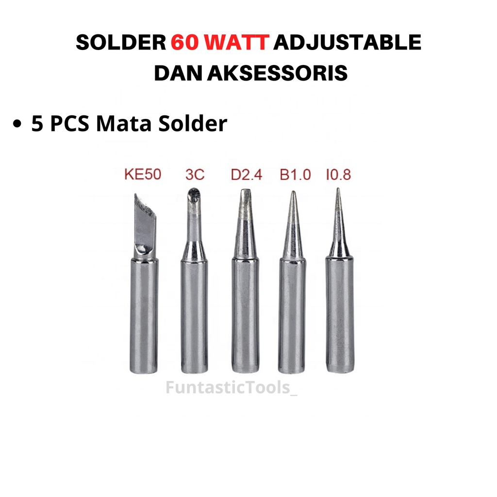 Solder Listrik Set Lengkap 60 Watt Adjustable Temperature Mata Solder Penyedot Timah