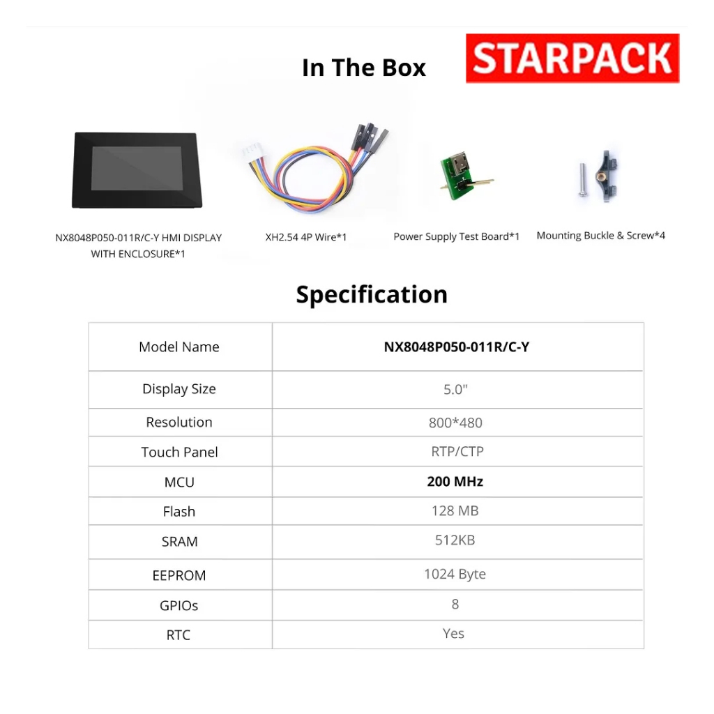 Nextion Intelligent 5.0" Inch Hmi Lcd Capacitive/Resistive Touchscreen With Enclosure