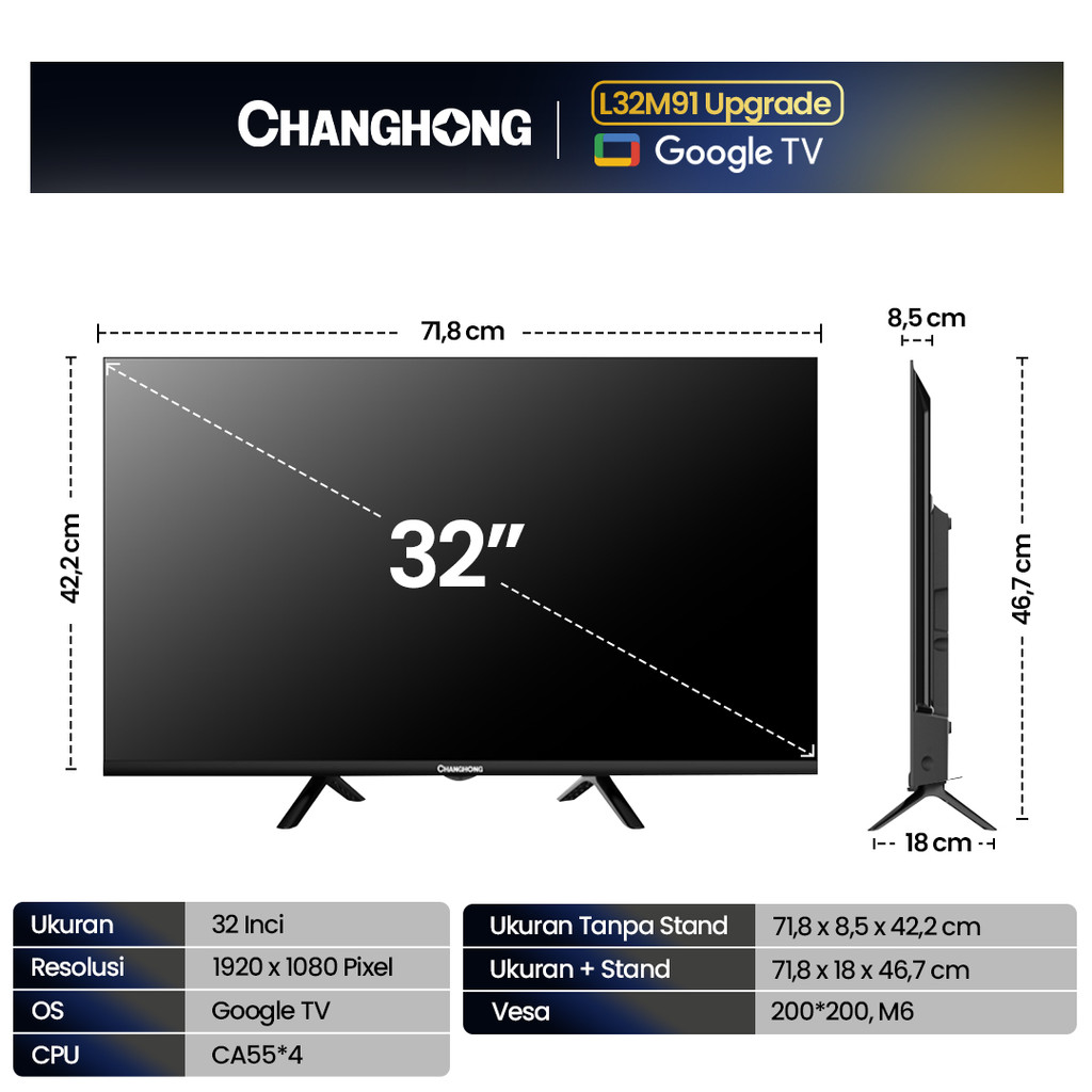 CHANGHONG GOOGLE SMART TV FHD DIGITAL 32 inch L32M91 Dolby Audio Netflix Youtube FREE VIDIO 1 Tahun