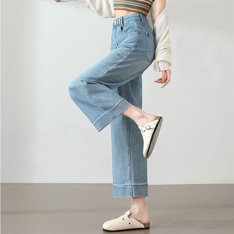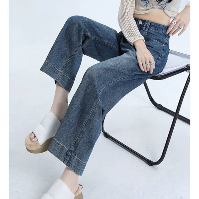 Celana Jeans Highwaist Wanita-Celana Jeans Lurus Longgar Pinggang Tinggi Celana High Waist Fashion Korean Style