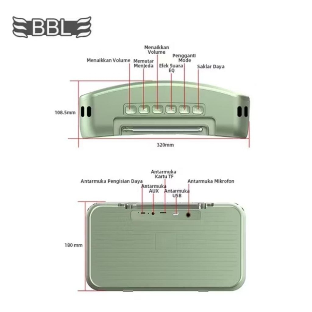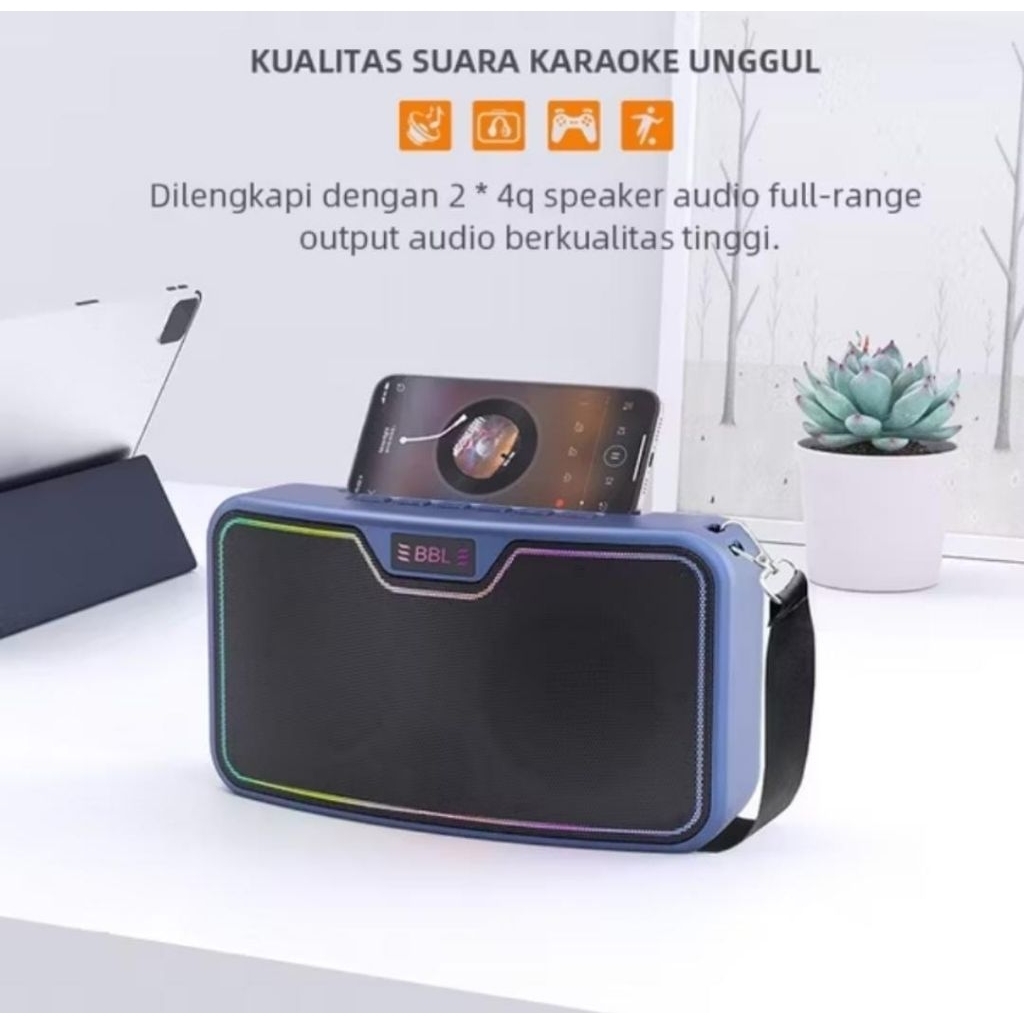 BBL-075 Speaker Bluetooth Super Bass Aktif Portable Karaoke Lampu LED Speaker Subwoofer