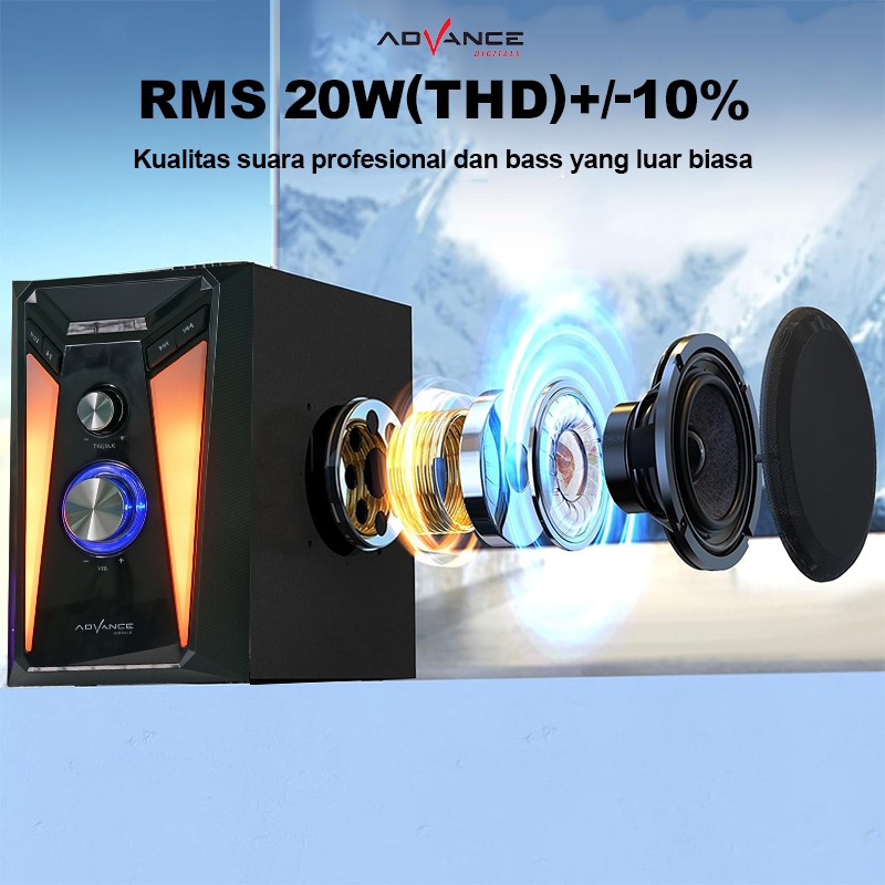 Advance Speaker 20W M15BT Stereo Bluetooth Xtra Bass Subwoofer Bisa Karoke Gratis Mic Wireless
