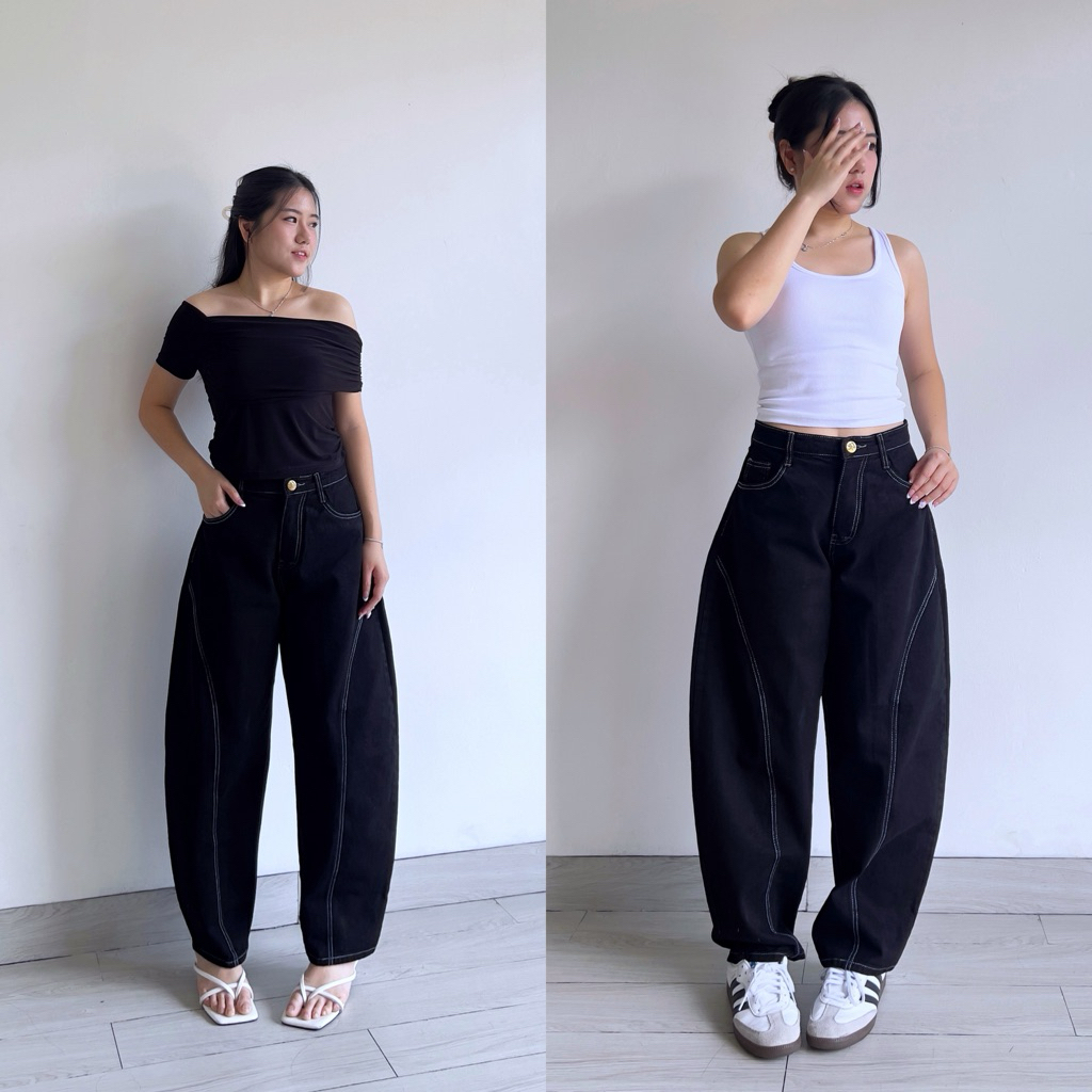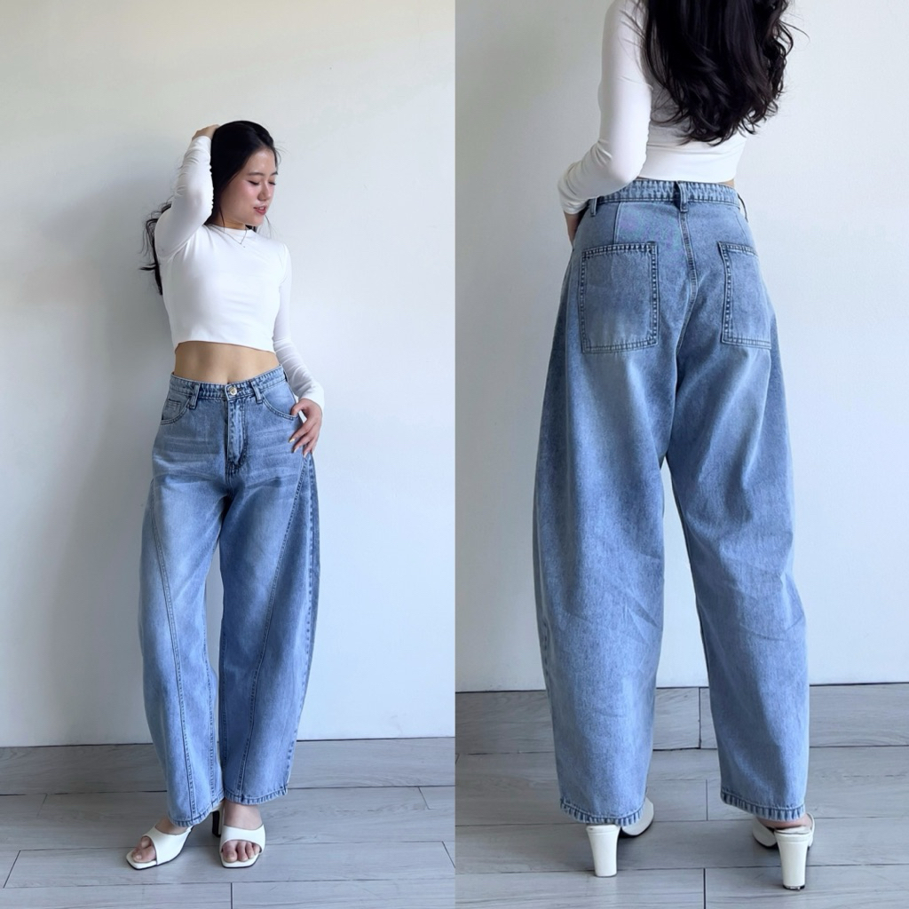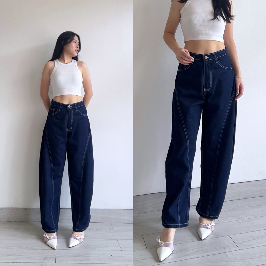 KLAVEE - LUCCA BARREL JEANS / Celana Jeans Denim Wanita Ringan Baggy Longgar Trendy Fashion Korea Basic