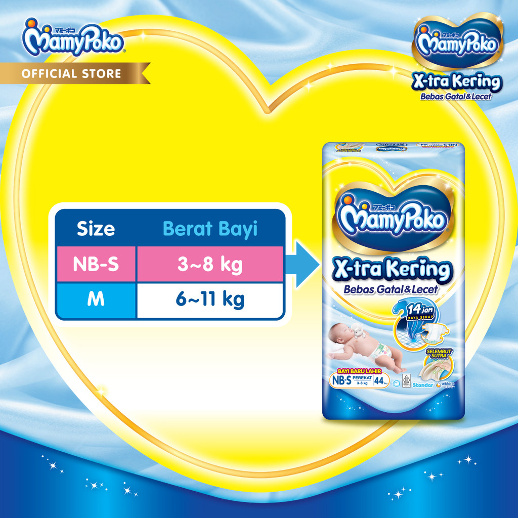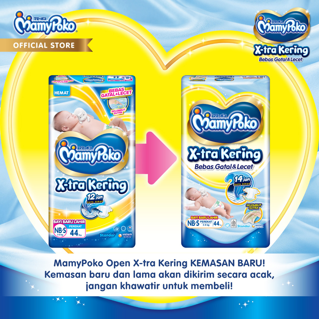 Mamypoko X-Tra Kering - Nb-S 44 - Popok Perekat Newborn Bayi Baru Lahir- 2 Packs