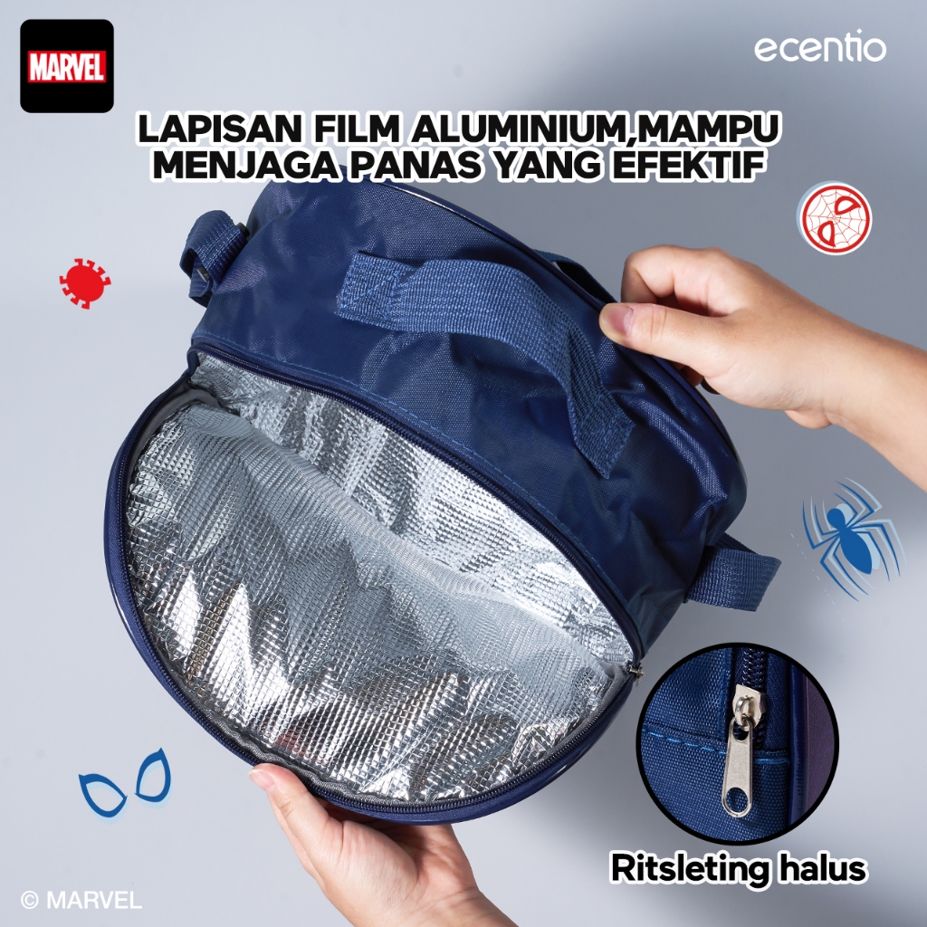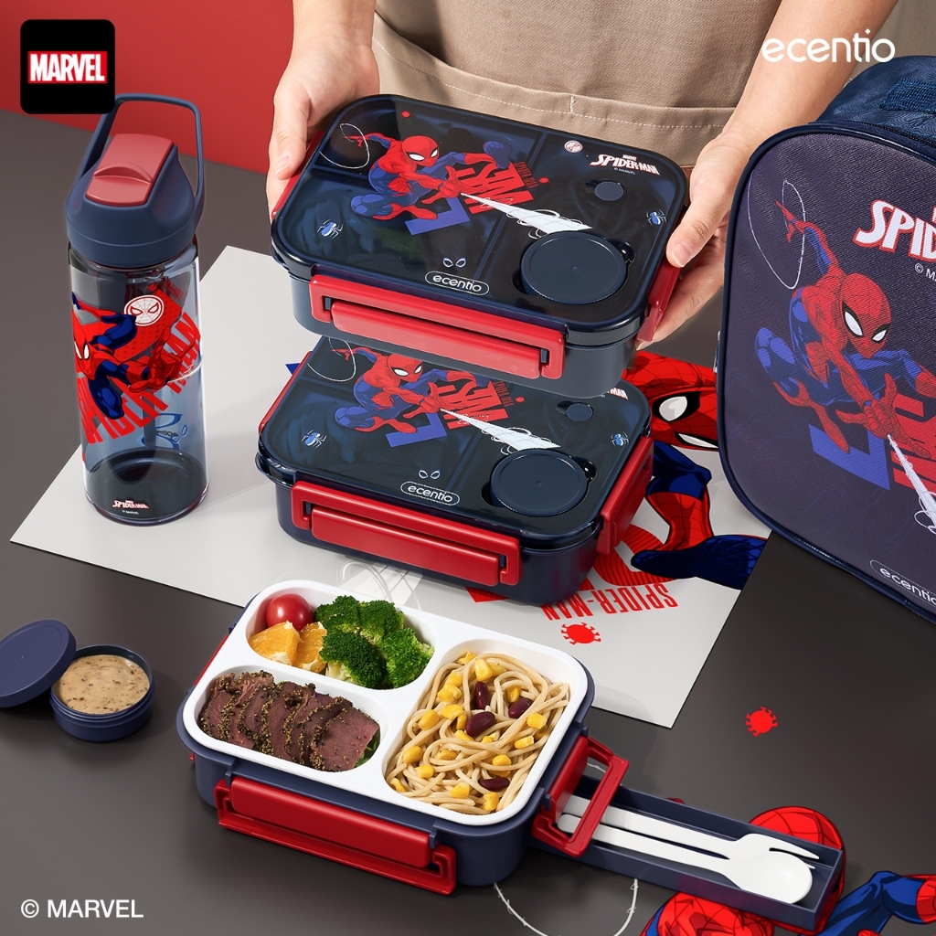 Ecentio X Marvel Kotak Makan Set Anti Tumpah Lunch Box Anak 800Ml Free Sendok Botol M