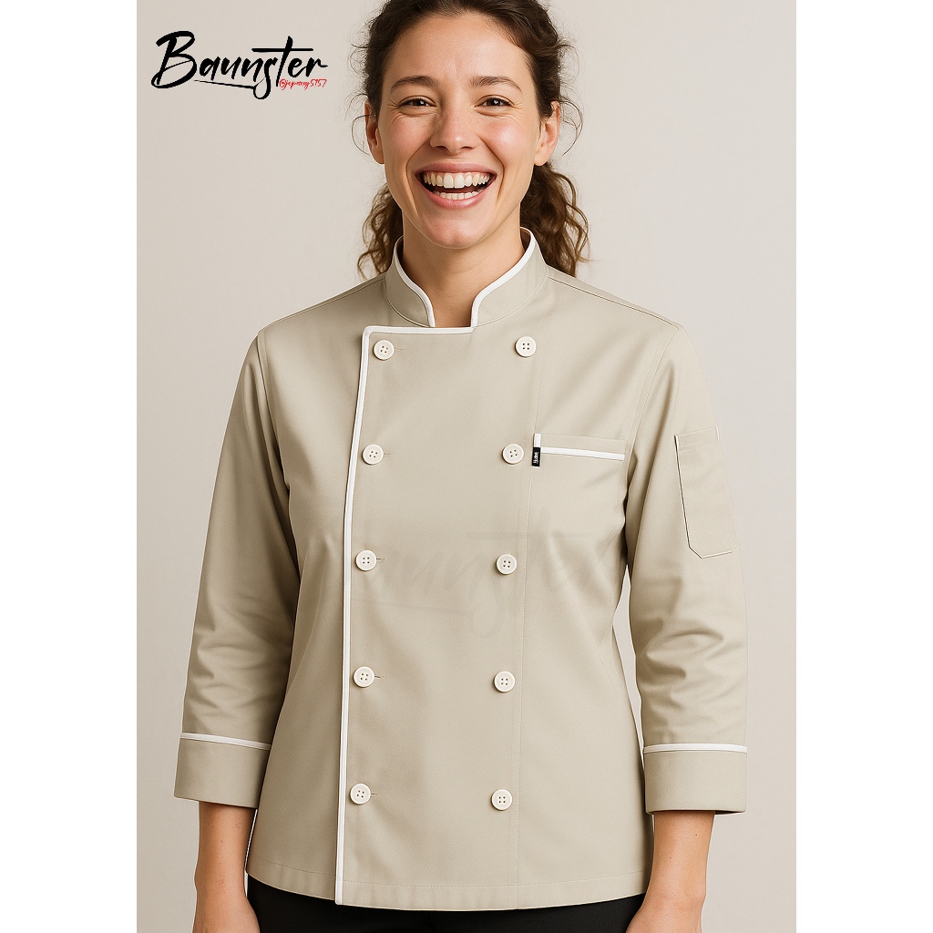 Baunster Baju Chef Khaki Premium Lengan Panjang Dan Pendek Bahan Drill Unisex