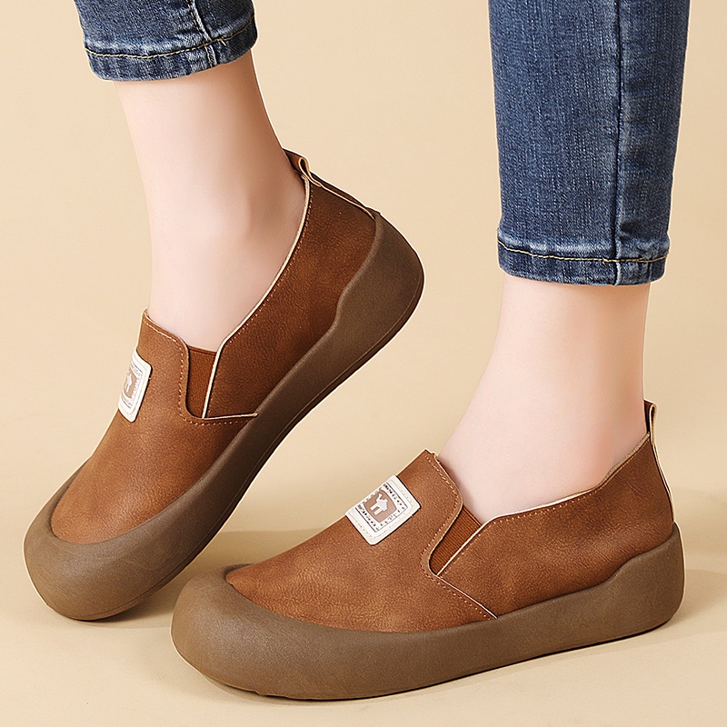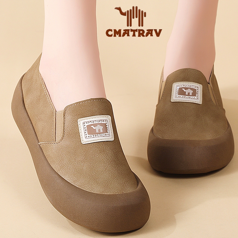 CMATRAV Sepatu Flat Kasual Wanita Loafer Kulit Slip-On Fashion Serba Cocok untuk Wanita Sepatu