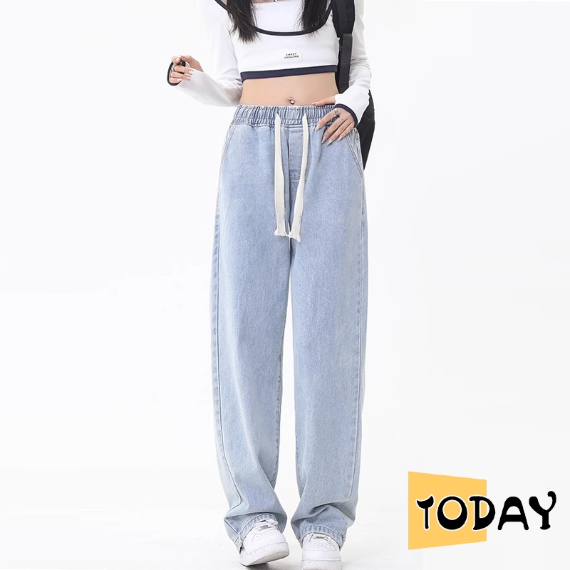 VV - Celana jeans wanita korean style celana jeans pinggang karet celana oversize wanita baggy pants celana kulot jeans premium