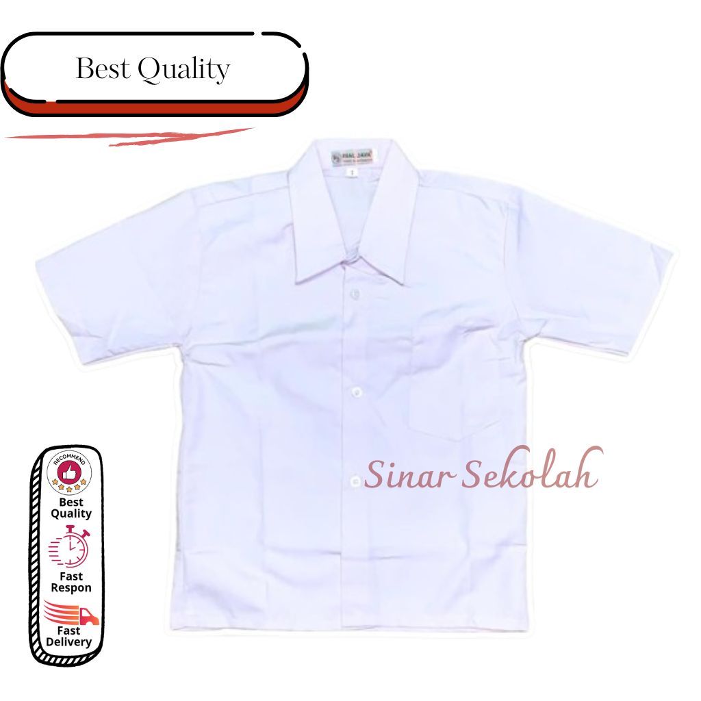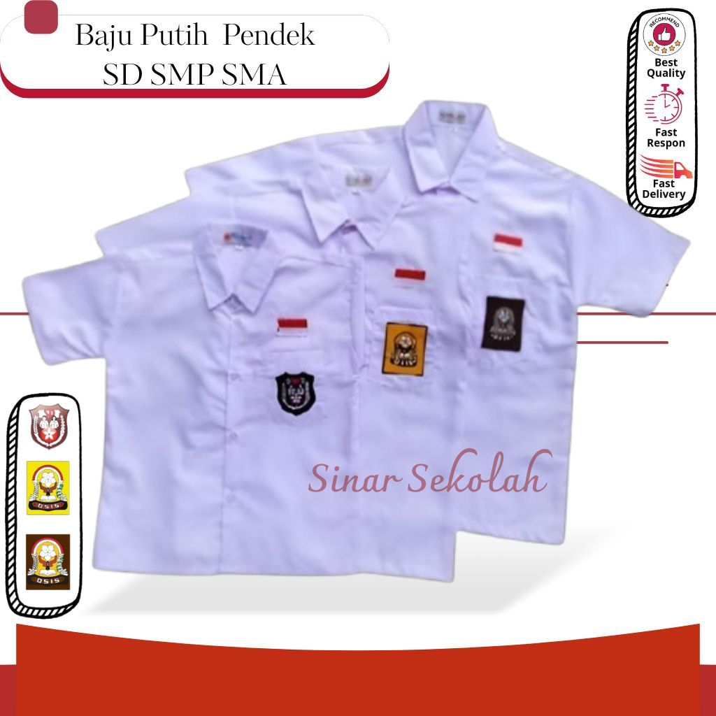 Seragam Sekolah SD SMP SMA Kemeja Putih Baju Atasan Lengan Pendek Bet Bordir Kain Oxford