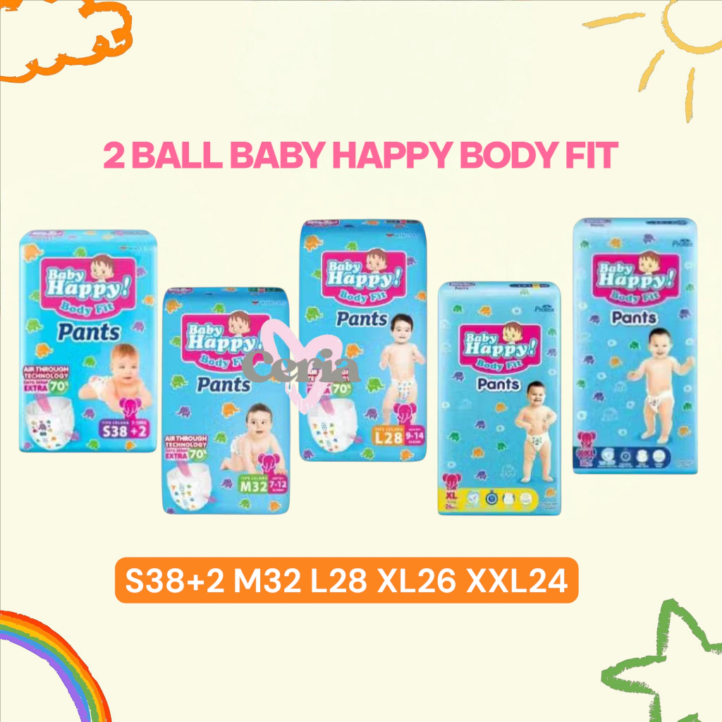 Paket 2 Ball Baby Happy Body Fit Pants Popok Celana S38+2 / M32 / L28 / Xl26 / Xxl24