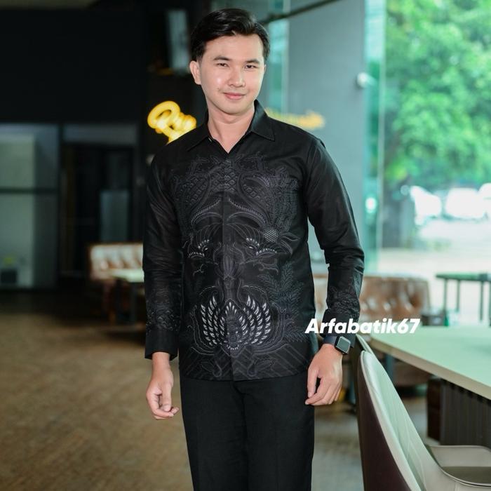 SLIMFIT MAHKOTA HITAM Baju batik Slim fit pria katun prima halus premium lapis furing hero nyaman ready seragaman