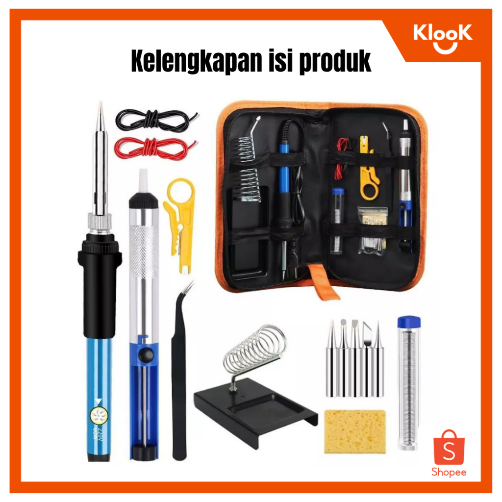 Solder Listrik Set Tas 15 Pcs Lengkap Iron Tool Kit 220V 60W/Solder Listrik Murah Paket Penyedot Penghisap Timah Set