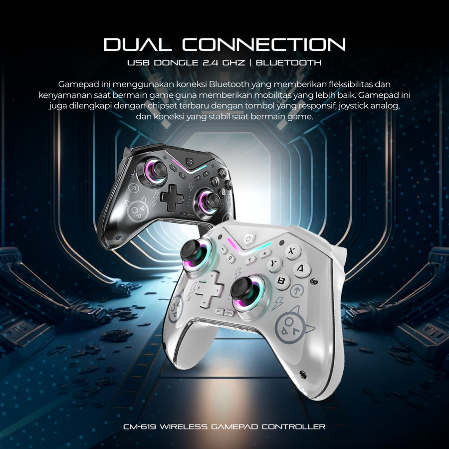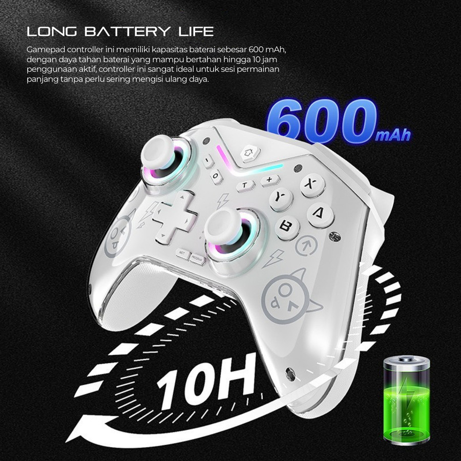 Gamepad Bluetooth CM-619 Joystick Game Controller untuk N-Switch / Steam / IOS /Android - Hitam-Putih. Tanpa Dongle