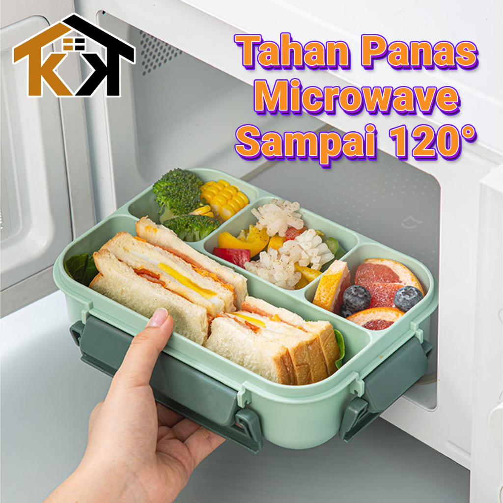 Lunch Box 4 Sekat Uk 1300 Ml Model Terbaru Free Wadah Saus + Set Alat Makan High Quality
