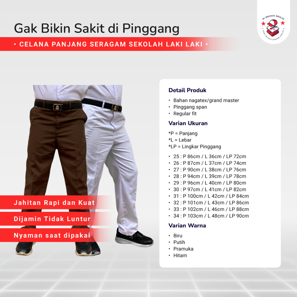 Seragam Sekolah SMP SMA SMK Celana Panjang Anak Laki Laki Warna Biru Hitam Putih Pramuka Coklat Abu