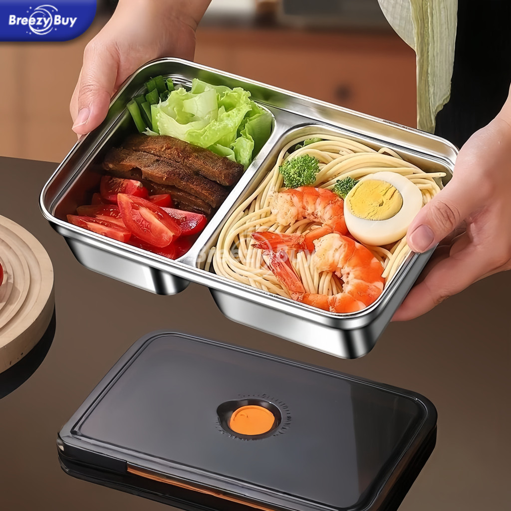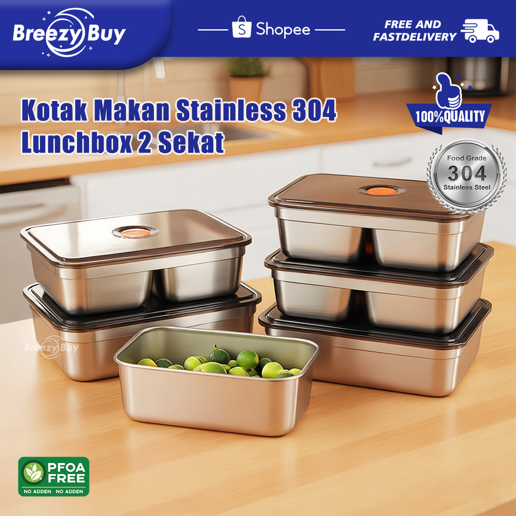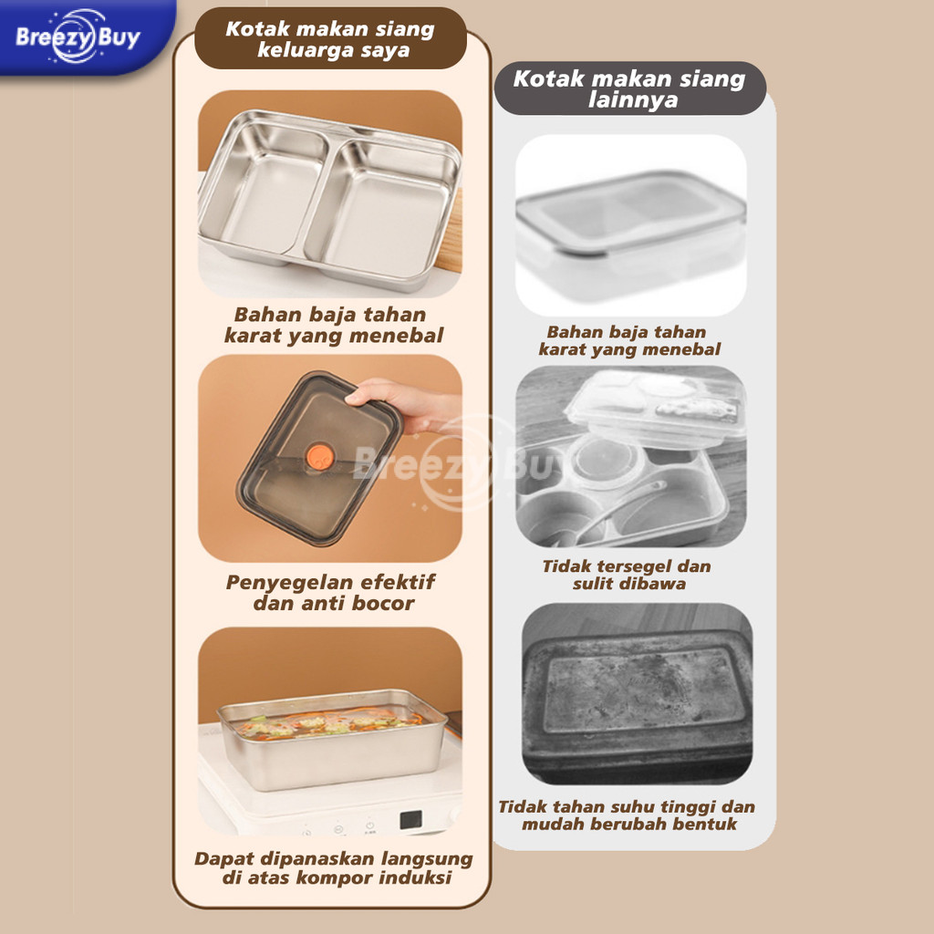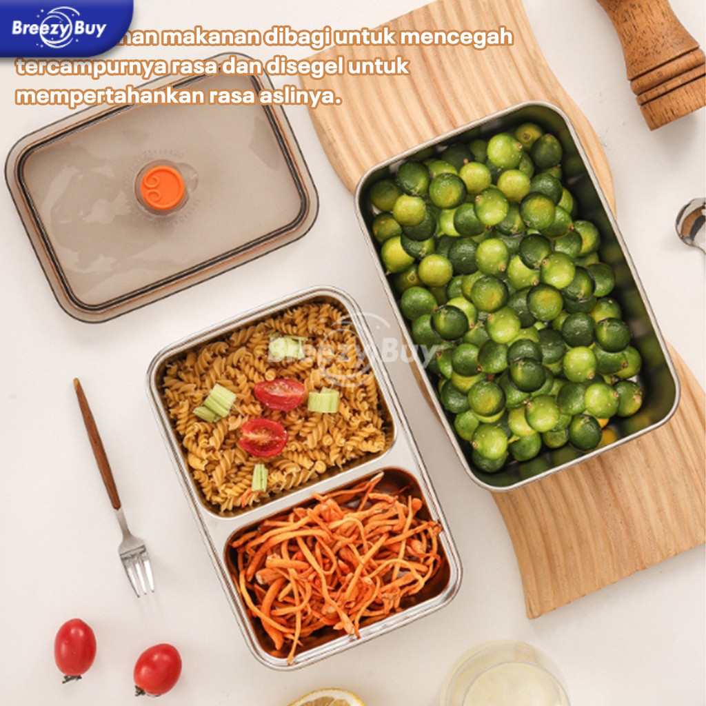 Kotak Makan Stainless 304 Lunchbox 2 Sekat Tutup Katup Dengan Seal Karet Anti Tumpah Bahan Food Grade Untuk Sekol