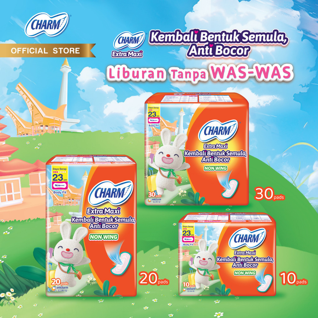 Charm Pembalut Body Fit Extra Maxi 23Cm Non Wing 30 Pads - 3 Packs