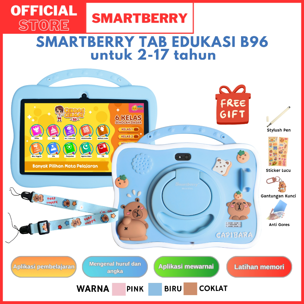 [PROMO] SMARTBERRY Study Kids Tab B89 Plus B95 B96 4/128GB Tablet 7Inch Aman untuk Belajar dan Bermain
