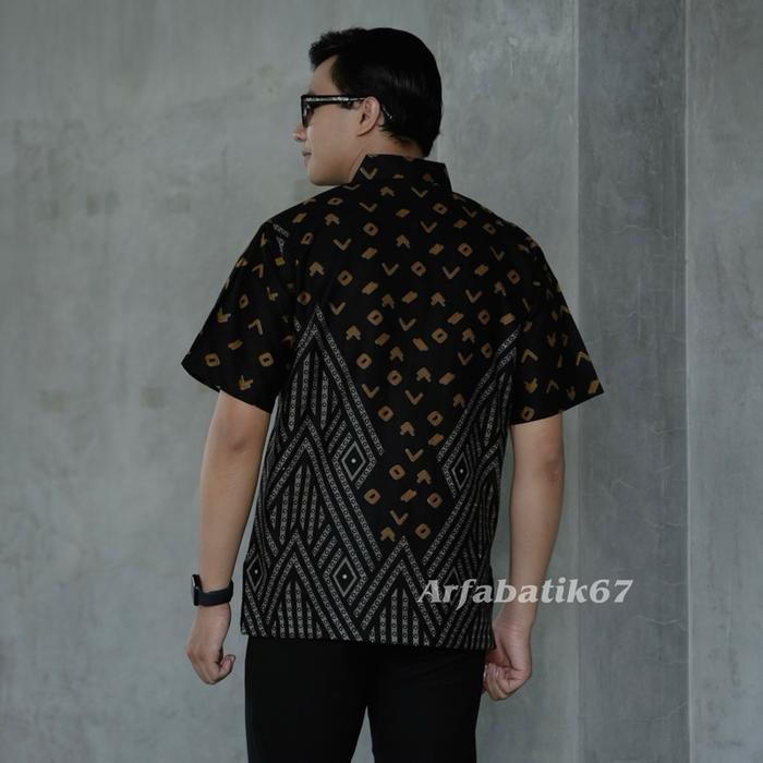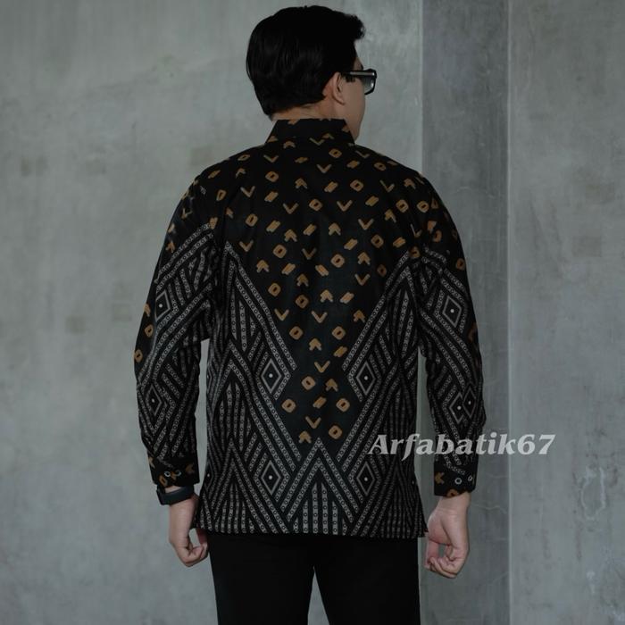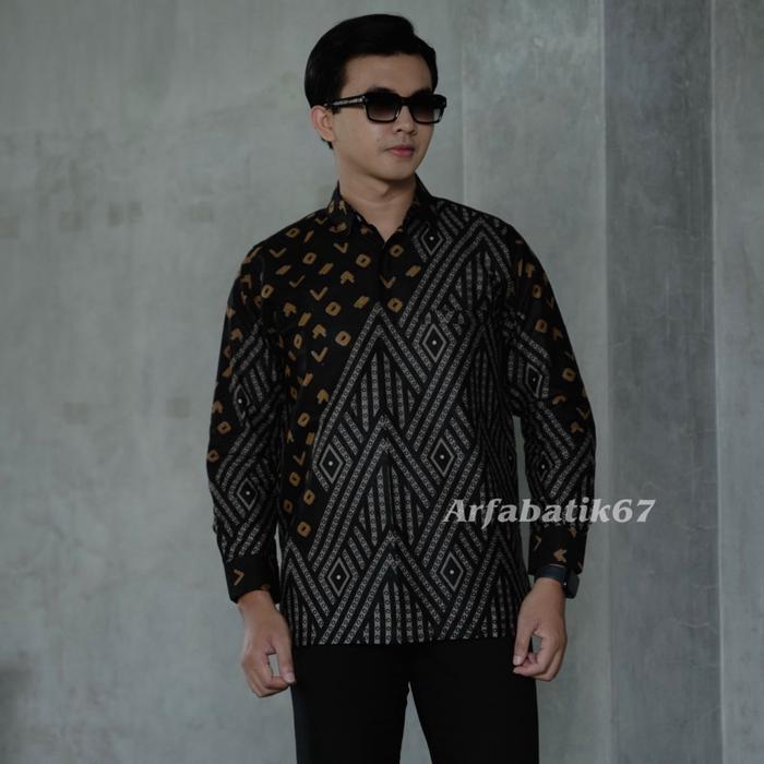 NEW Piramit HITAM Baju batik pria katun prima halus premium tangan panjang dan tangan pendek lapis furing hero