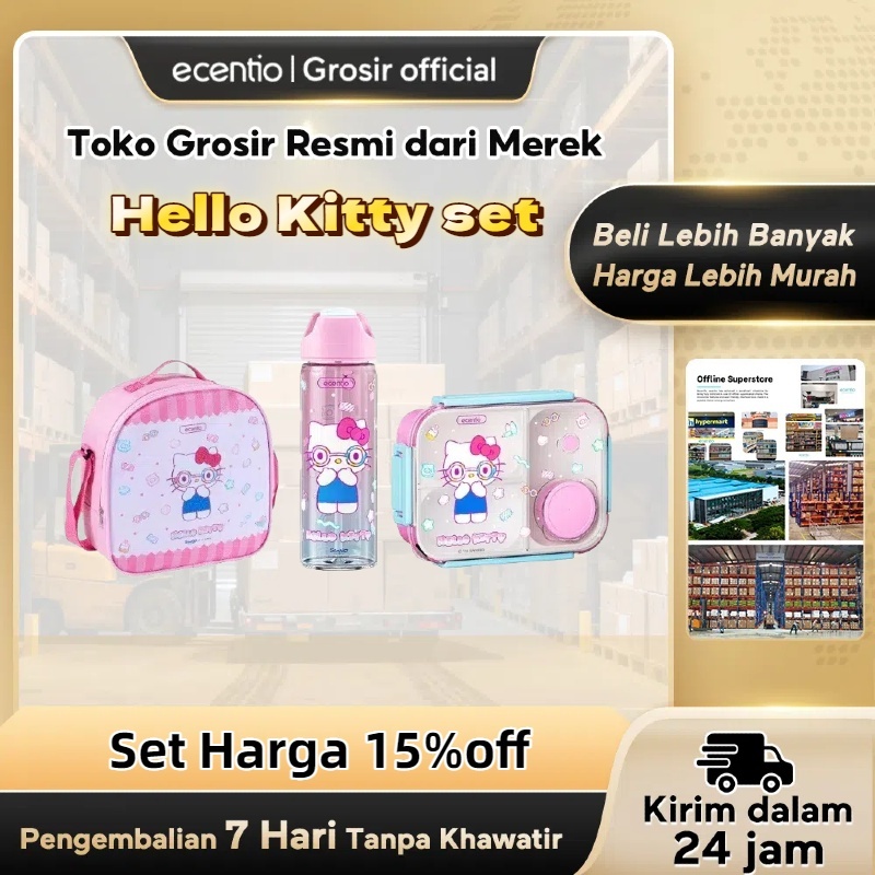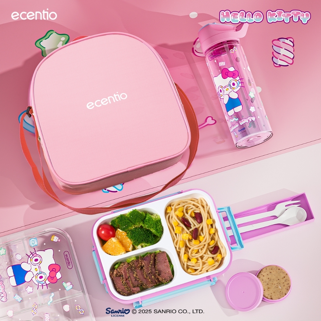 Ecentio Lunch Box Set Sanrio Set Kotak Makan Hello Kitty Back To School Season 2.0 Anti Tumpah Lunch Box Anak 8