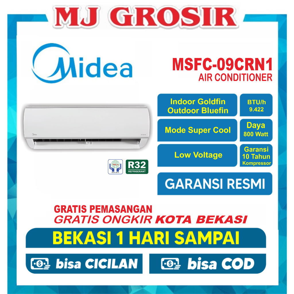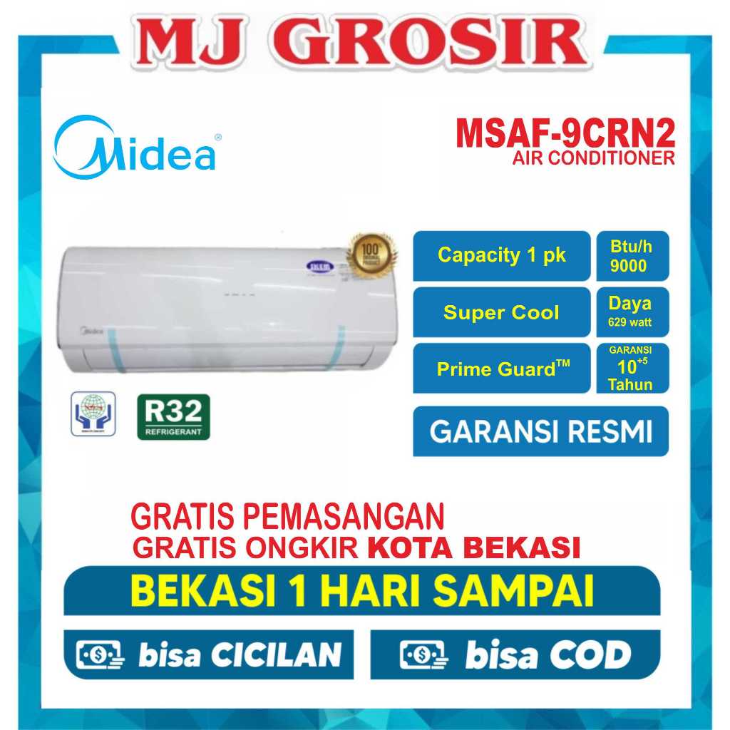 AC MIDEA MSAF 09 CRN 1 PK + PASANG R32 STANDARD LOW SUPER COOL