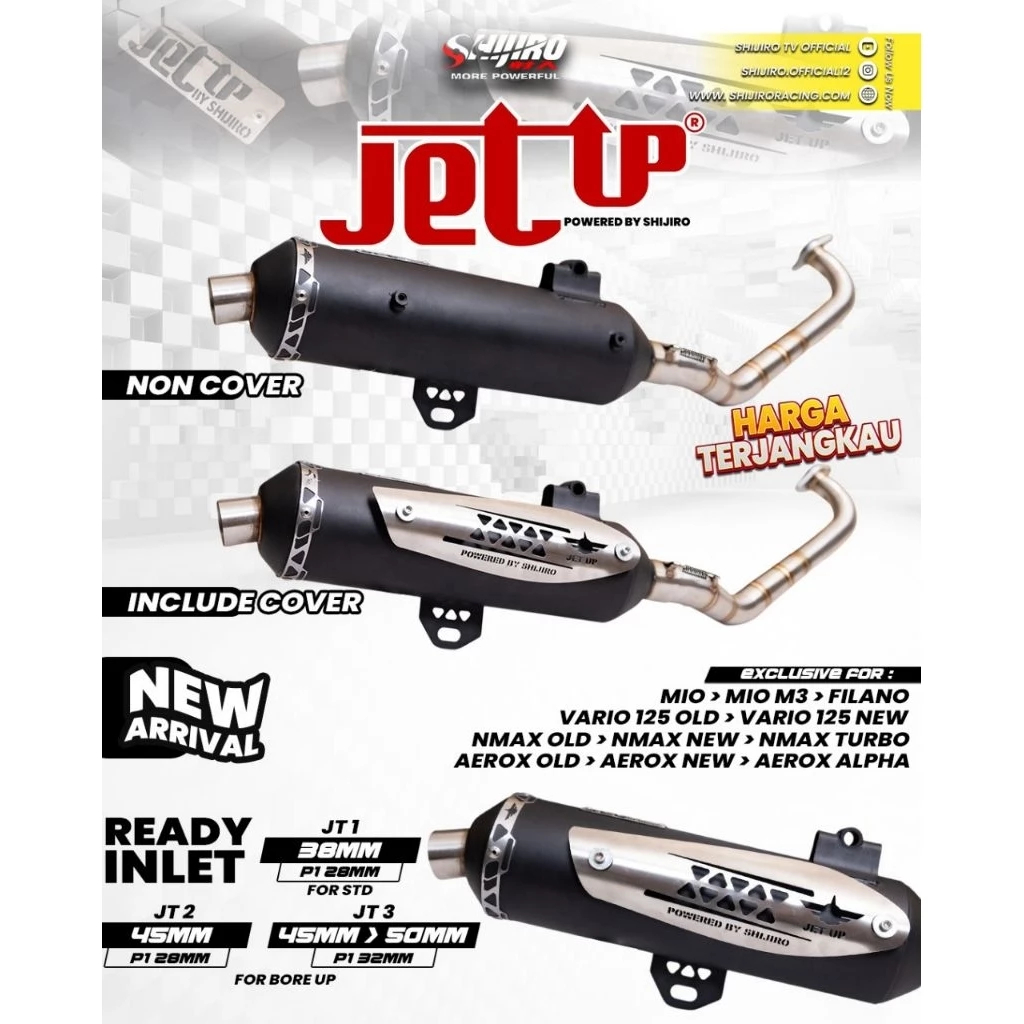 Knalpot Standar Racing Shijiro Jet - Up Black Series N-Max New/Old,Aerox New/Old,N-Max Turbo/Neo,Aerox Alpha,Vario 125/1