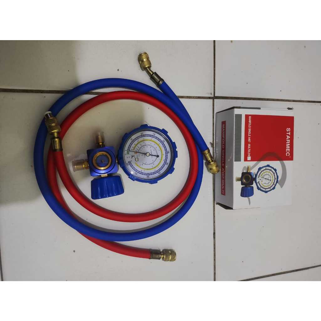 Paket Manifold Single R22 / R134 / R407 / R404 Sighglass Include Selang ( Manifold Single Siglass )