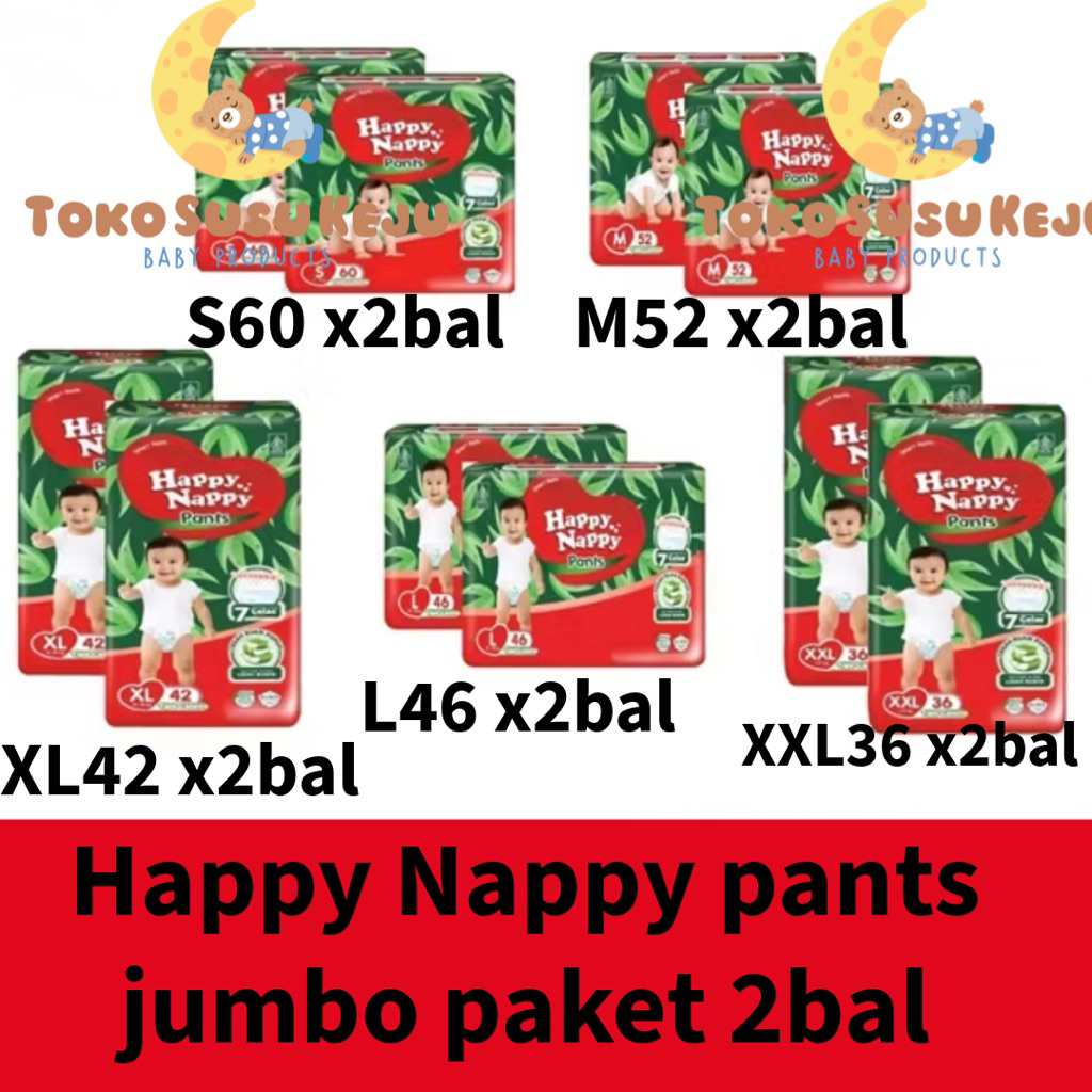 Happy Nappy Smart Pants Jumbo Paket 2Bal S60, M52, L46, Xl42, Xxl36 Popok Celana