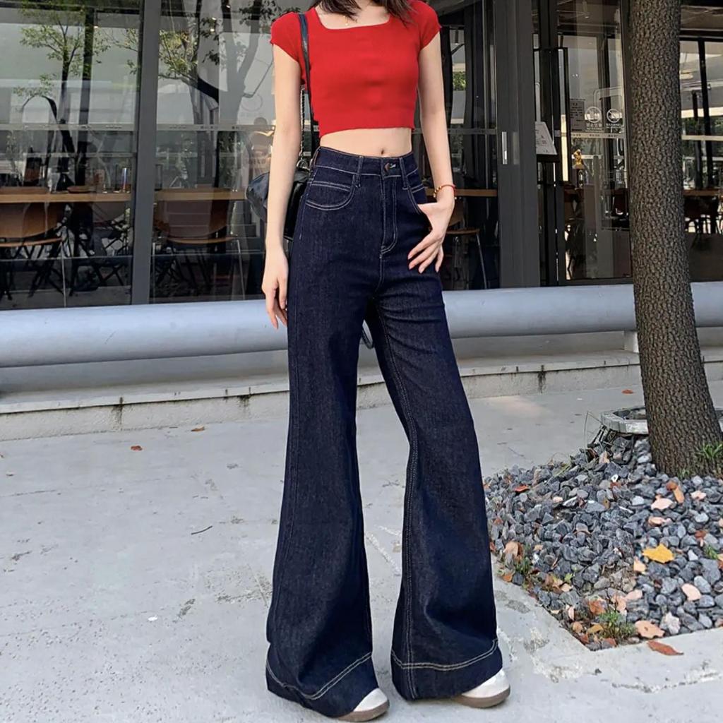 TT Mode Cutbray Jeans Biru Tua Highwaist Kasual Korean Jeans Wanita