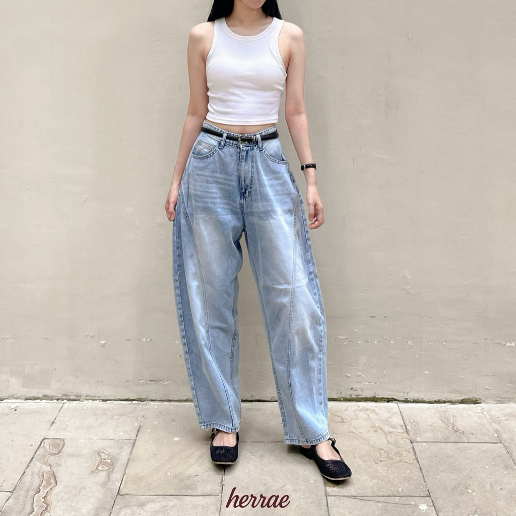 HERRAE - BISOU JEANS | Barrel Jeans Denim Wanita Highwaist Baggy Pants