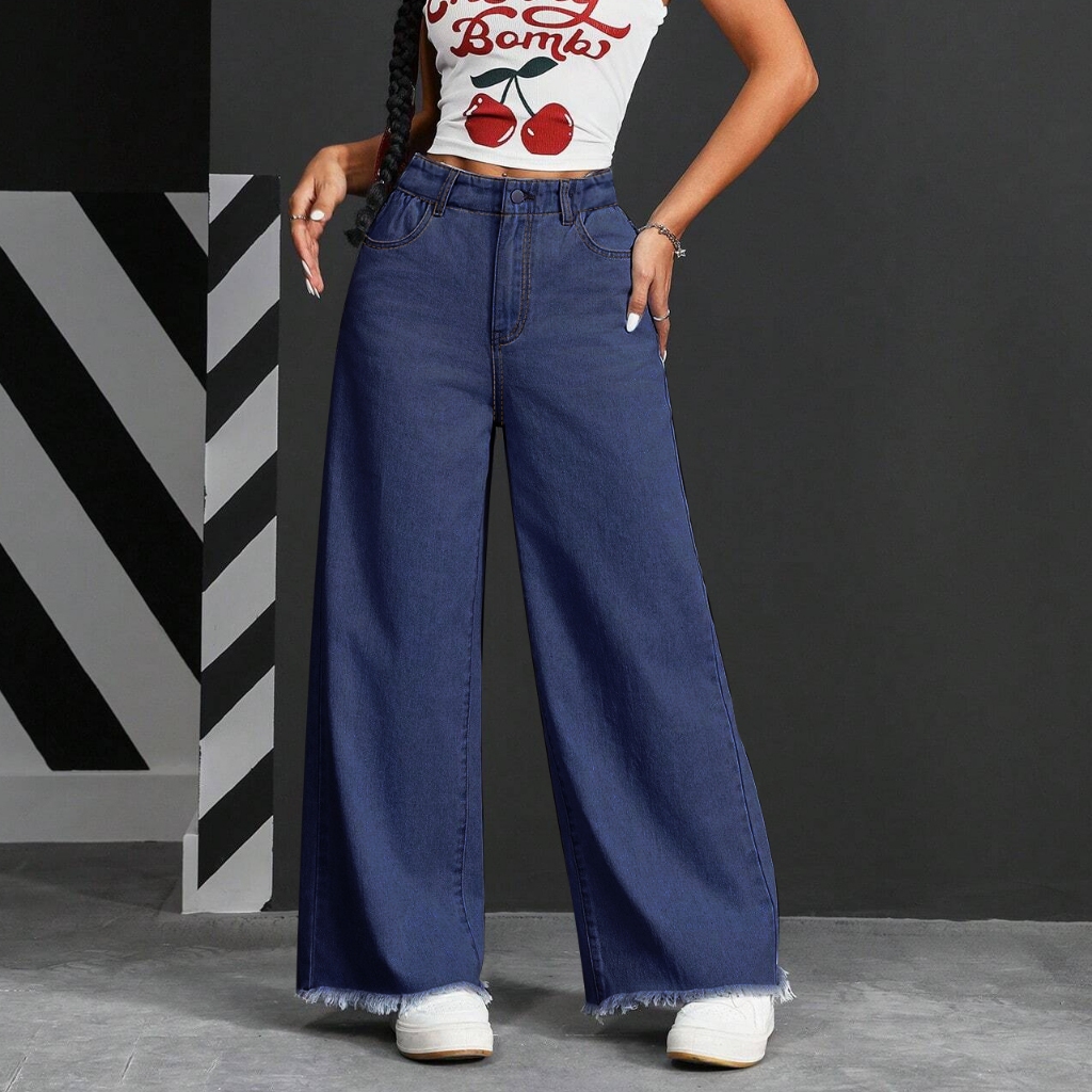 Jeans Baggy High Waist Plus Size Korean Style Pinggang Getah Seluar Baffel Jeans Wanita Denim