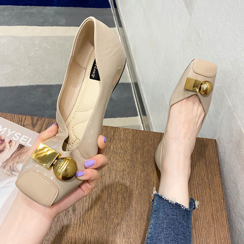 Sepatu flat yang nyaman untuk wanita, desain gaya Korea baru, sepatu kulit lembut ujung persegi dengan mulut dangkal, sepatu kerja kantor, sepatu pernikahan perjamuan Q-01