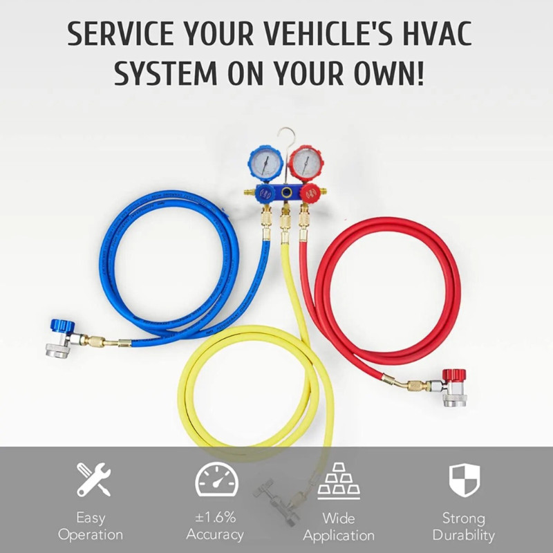 Meteran Fluorida 536G (Dengan Tiga Selang)/Brass Double Manifold Multi One Cool Pengisian Gas Dingin Ac Mobil Ac Kulkas