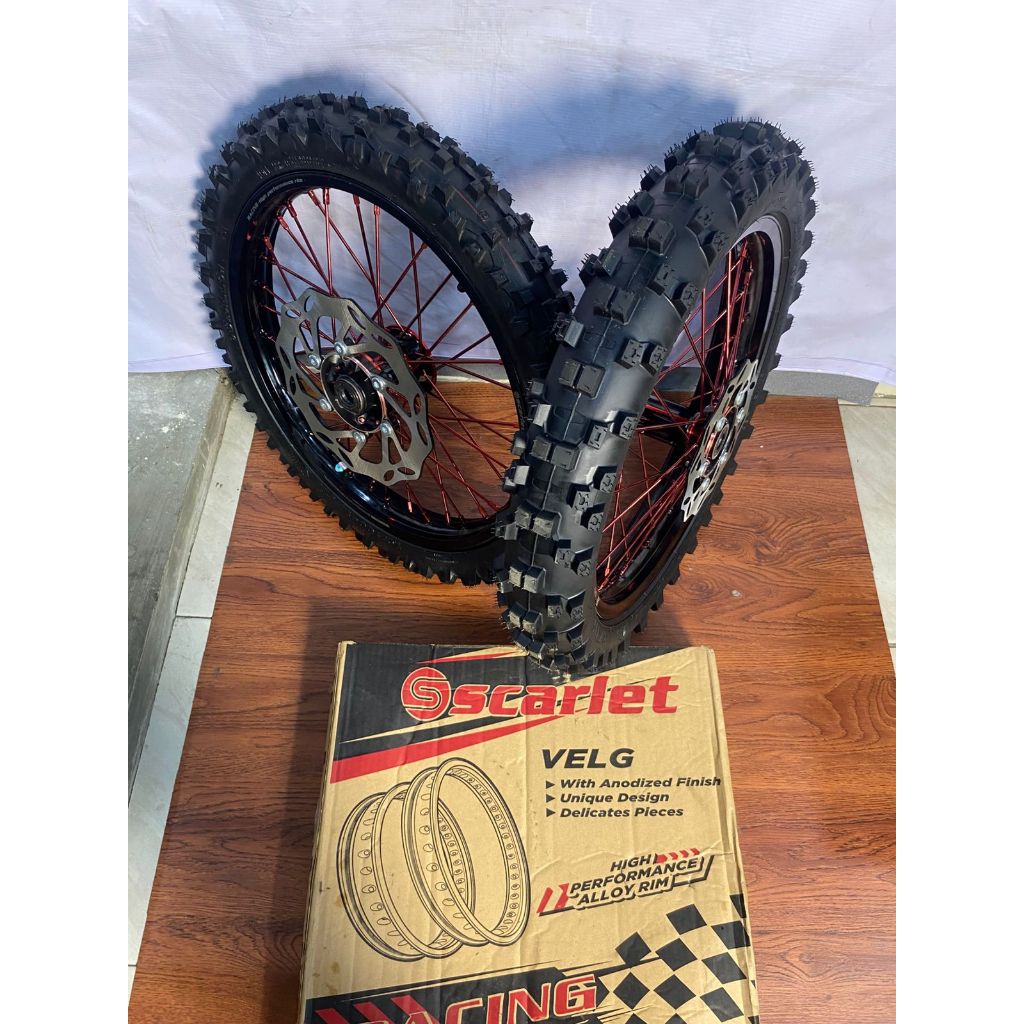 Wheelset Roda RBT Tromol KLX Velg Slet 160/185 Ring 17 Ban Offroad Sudah Bonus Gear Dan Piringan