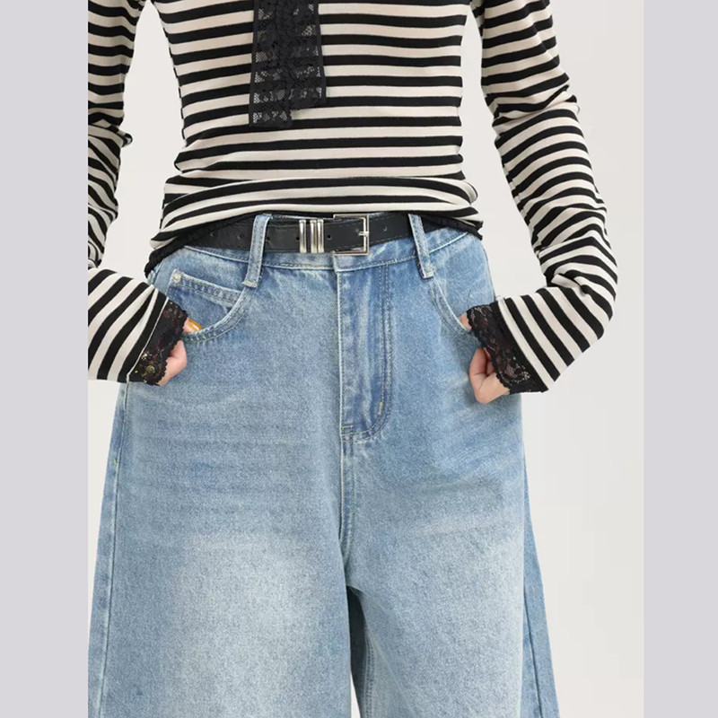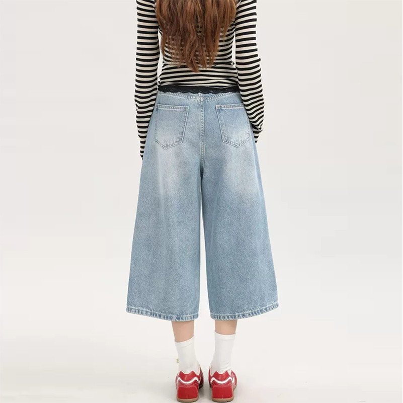 S-6XL Celana Pendek Denim Selutut Untuk Wanita Celana Denim Berpotongan Lebar Pinggang Tinggi Bergaya Vintage