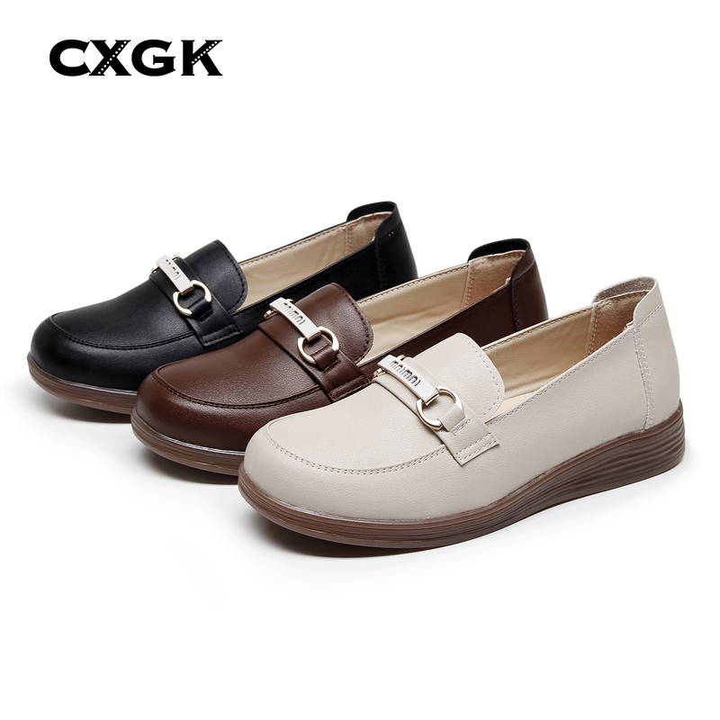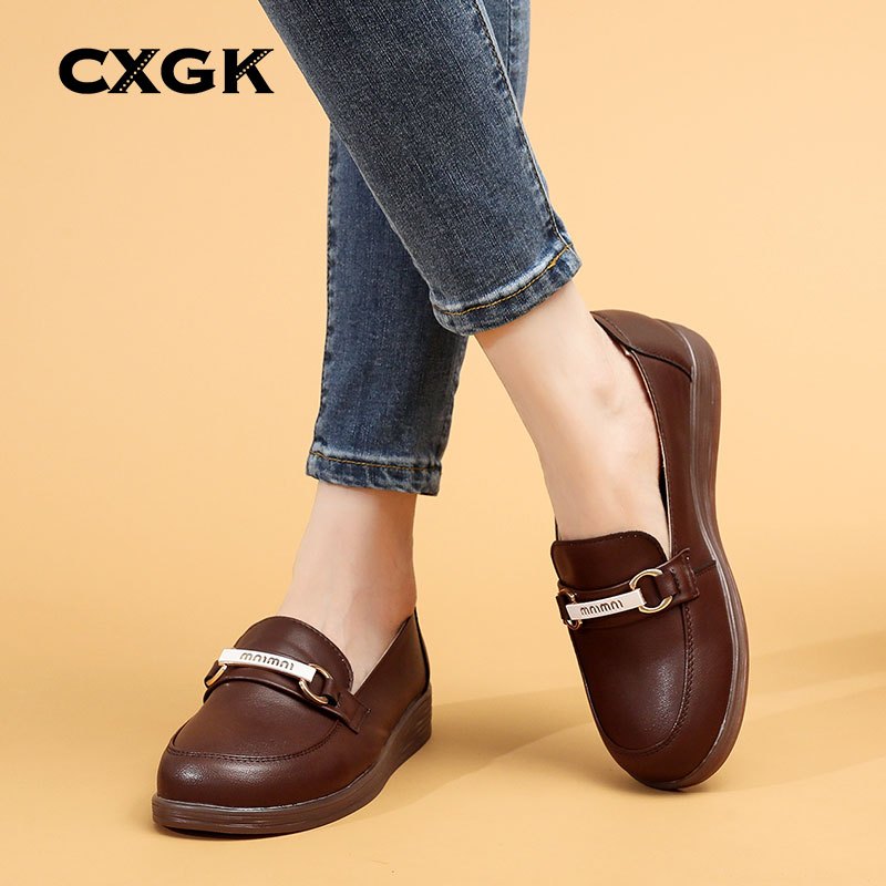 CXGK Sepatu Wanita Flat Bahan Kulit - Model Terbaru, Sol Anti Slip & Ringan, Nyaman Banget Buat Jalan-Jalan