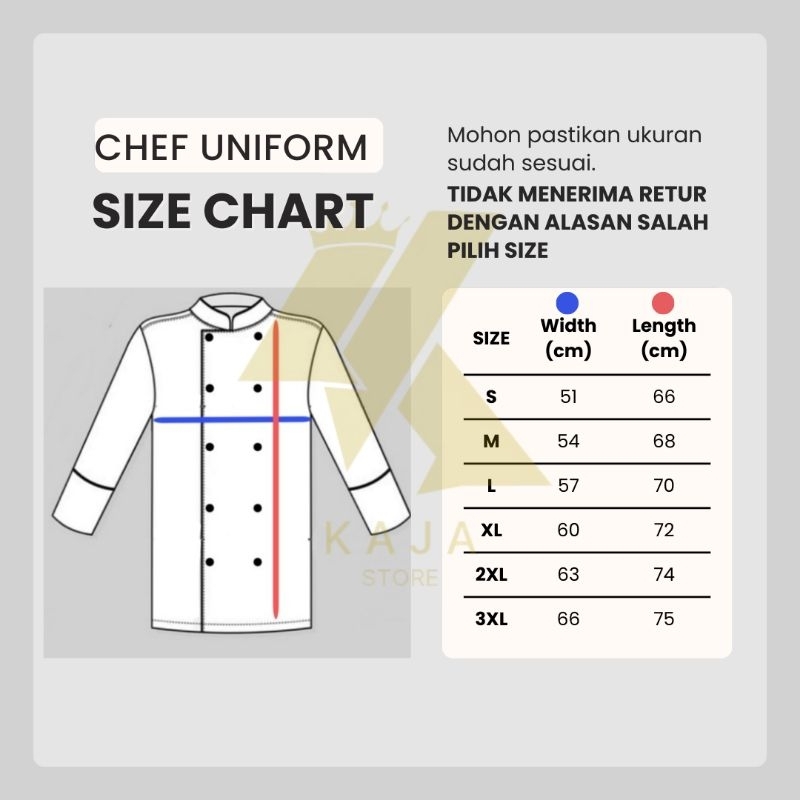Baju Kemeja Kerja Chef Koki Unisex Pria Wanita American Drill Premium