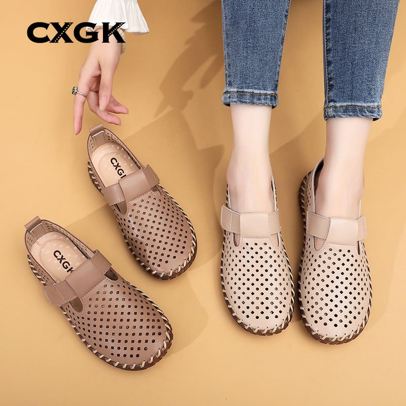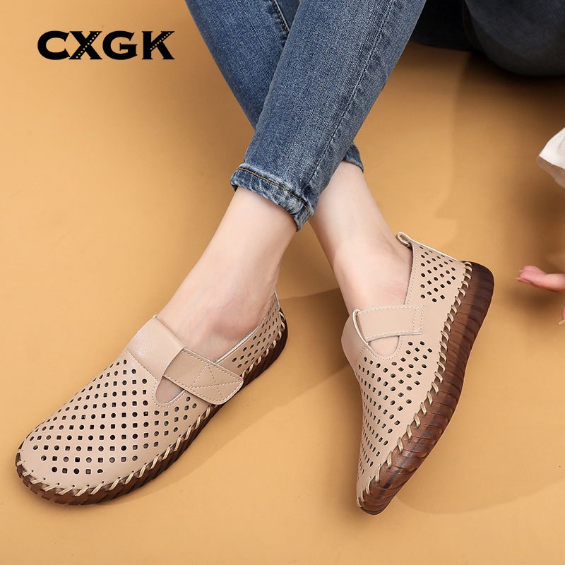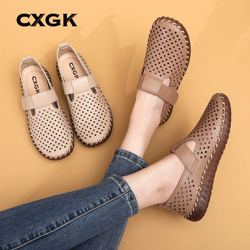 CXGK Sepatu Wanita Slip On Anti Slip Casual Nyaman ke Kantor,kulit asli Premium