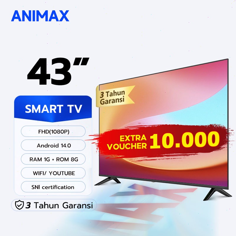 Animax Digital TV 32 inch Smart TV LED 32 inch 40 inch 43 inch Televisi LED OS Android 14.0/Coolita Youtube-Web Browser-Wifi