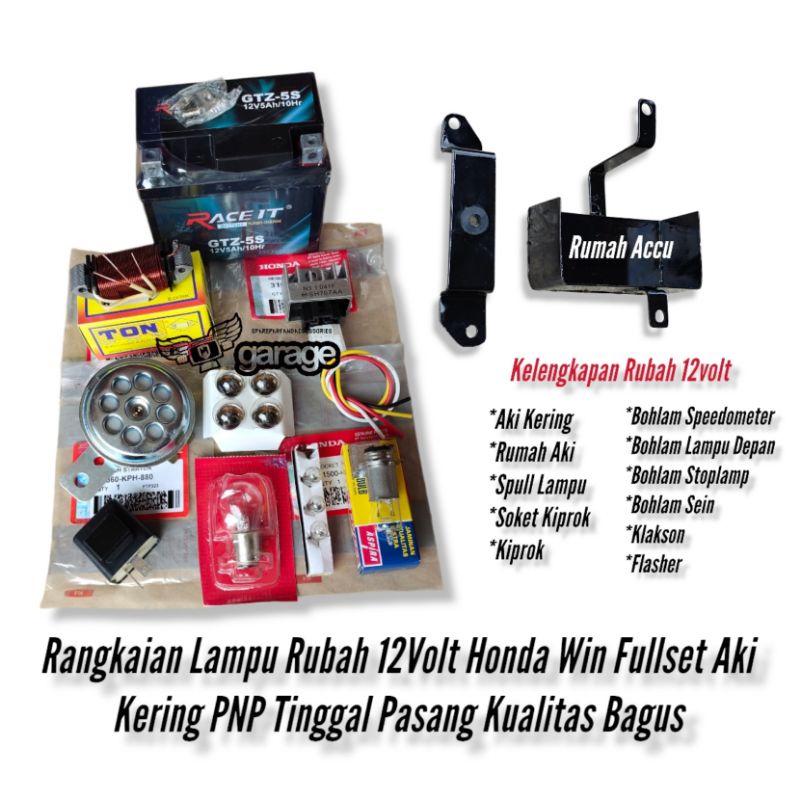 Rangkaian Lampu Win Rubah 12Volt Fullwave Honda Win Fullset Aki Accu Kering Arus Ac Dc Sangat Terang