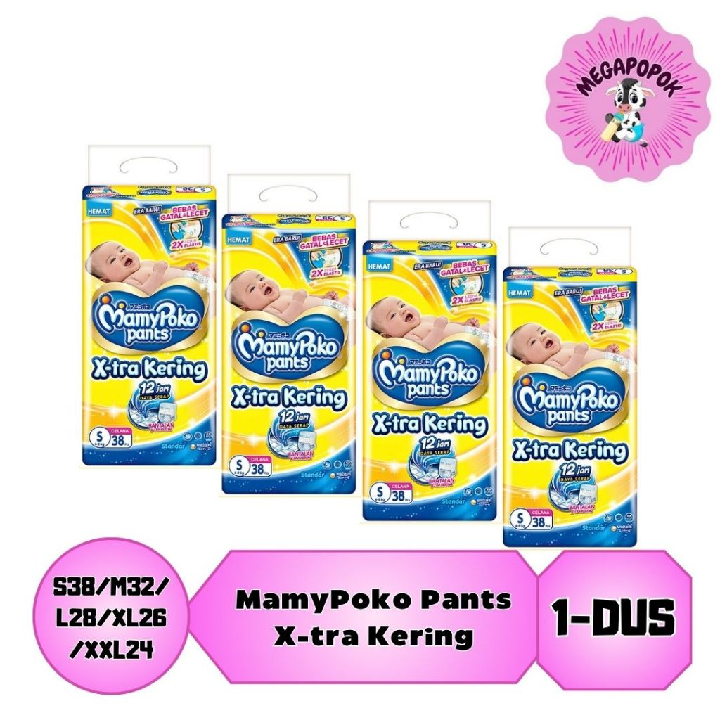 1-Dus Mamypoko Exstra Kering Isi 4-Ball S38/M32/L28/Xl26/Xxl24