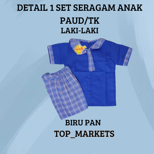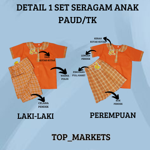 1 SET SERAGAM TK/PAUD BAJU KOTAK-KOTAK PENDEK PAUD/TK
