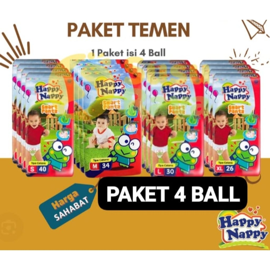 ( Paket 4 Ball ) Happy Nappy Smart Pants ( Harga Grosir )