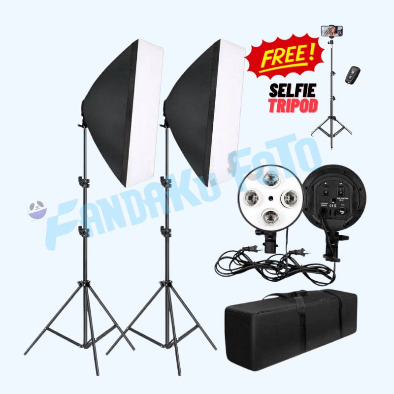 Paket Lighting Studio Softbox 4 Socket Tipe Continous Untuk Lampu Video