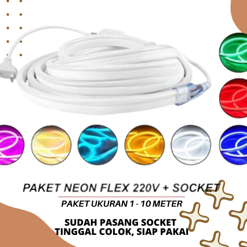 Paket Lampu Led Neon Flex 220V 6M-10Mlengkap Tinggal Colok Waterproof