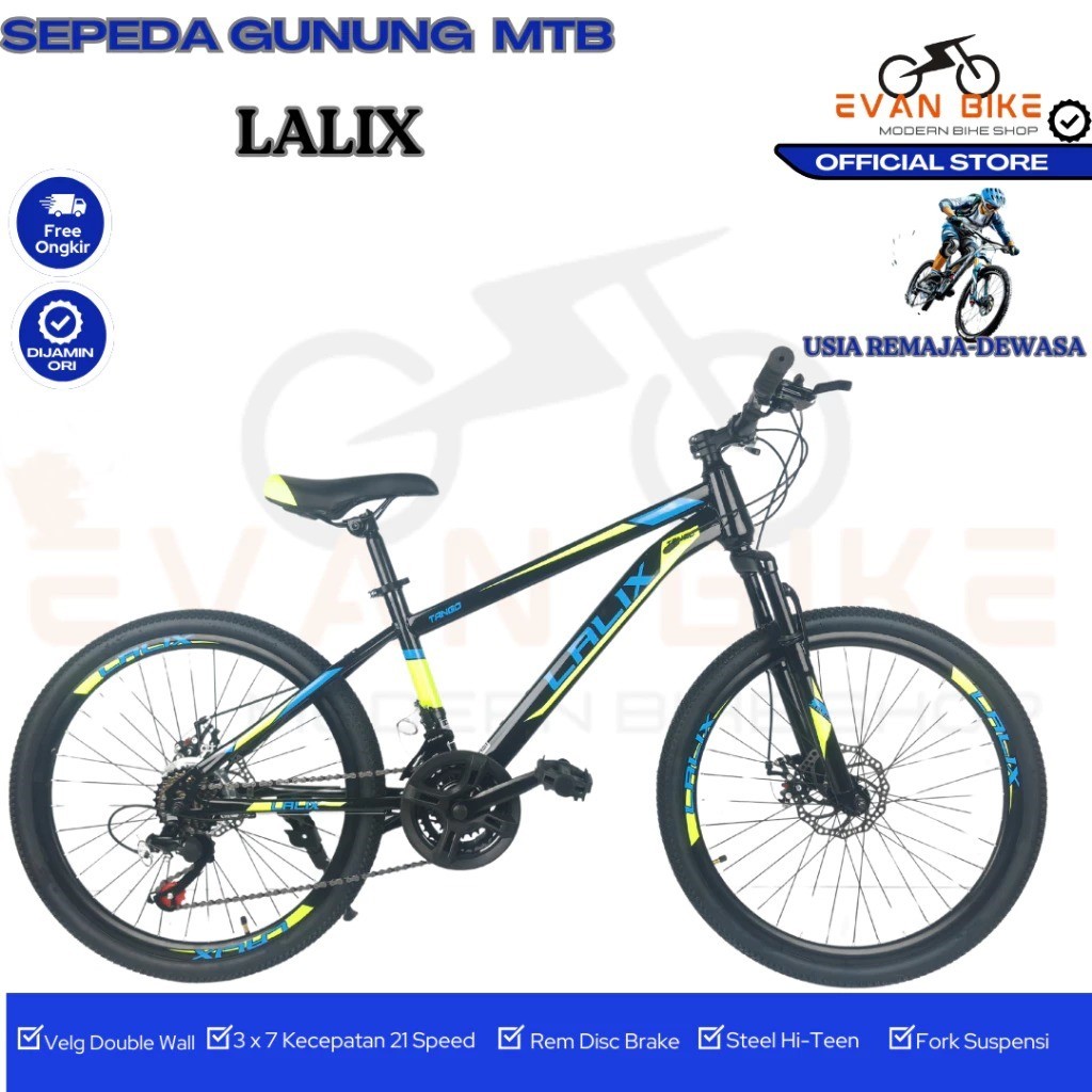 SEPEDA GUNUNG LALIX 26 - 24 - 20 INCH MTB OPERAN 21 SPEED Disc Brake Usia Remaja sampai