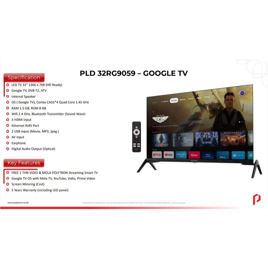 POLYTRON GOOGLE TV Smart Android TV 32 Inch PLD 32RG9059 Netflix