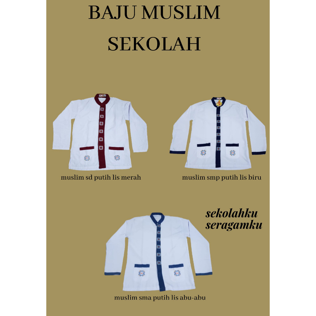 SD PUTIH LIS MERAH, SD CREAM LIS MERAH, SD PUTIH LIS HITAM, SD PUTIH LIS HIJAU, SD CREAM LIS COKLAT, SMP PUTIH LIS BIRU, SMP BIRU LIS BIRU, SMP CREAM LIS COKLAT, SMA BIRU LIS ABU, SMA PUTIH LIS ABU